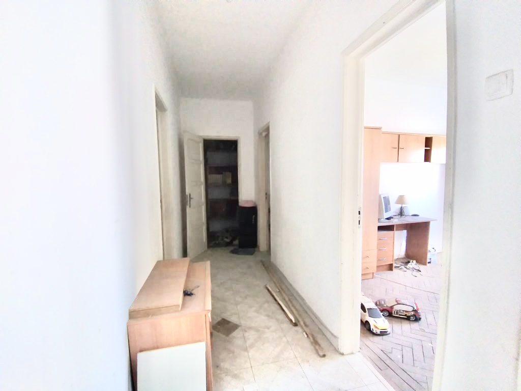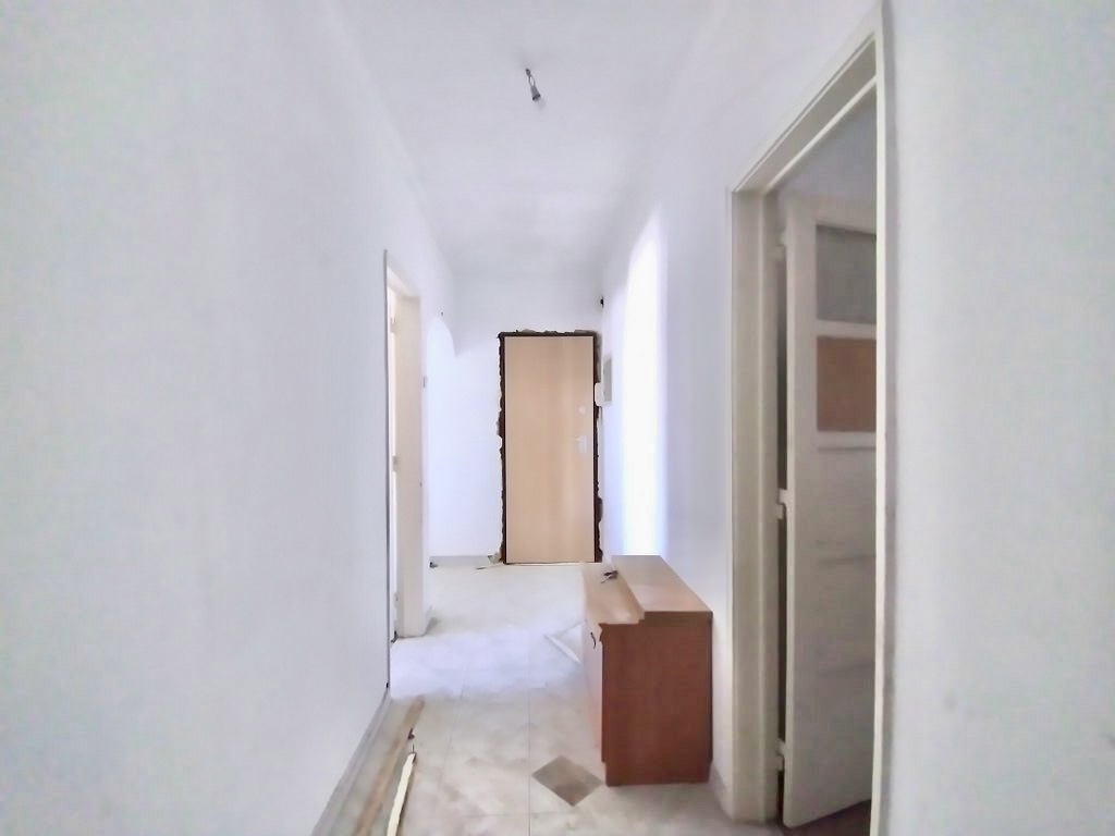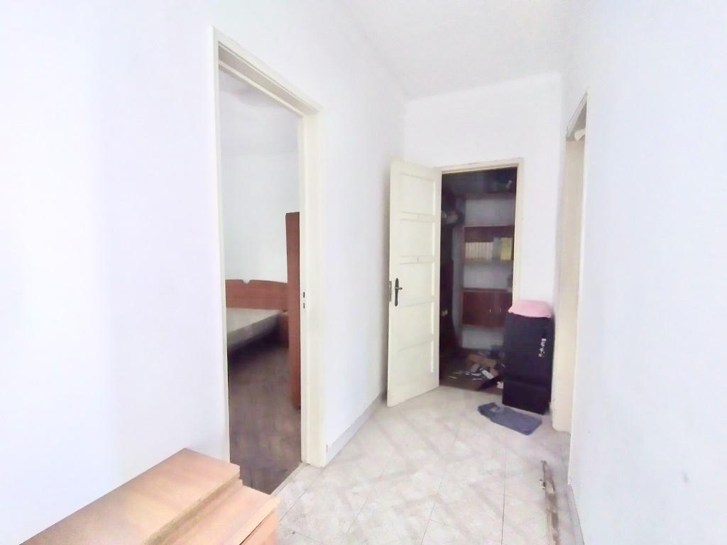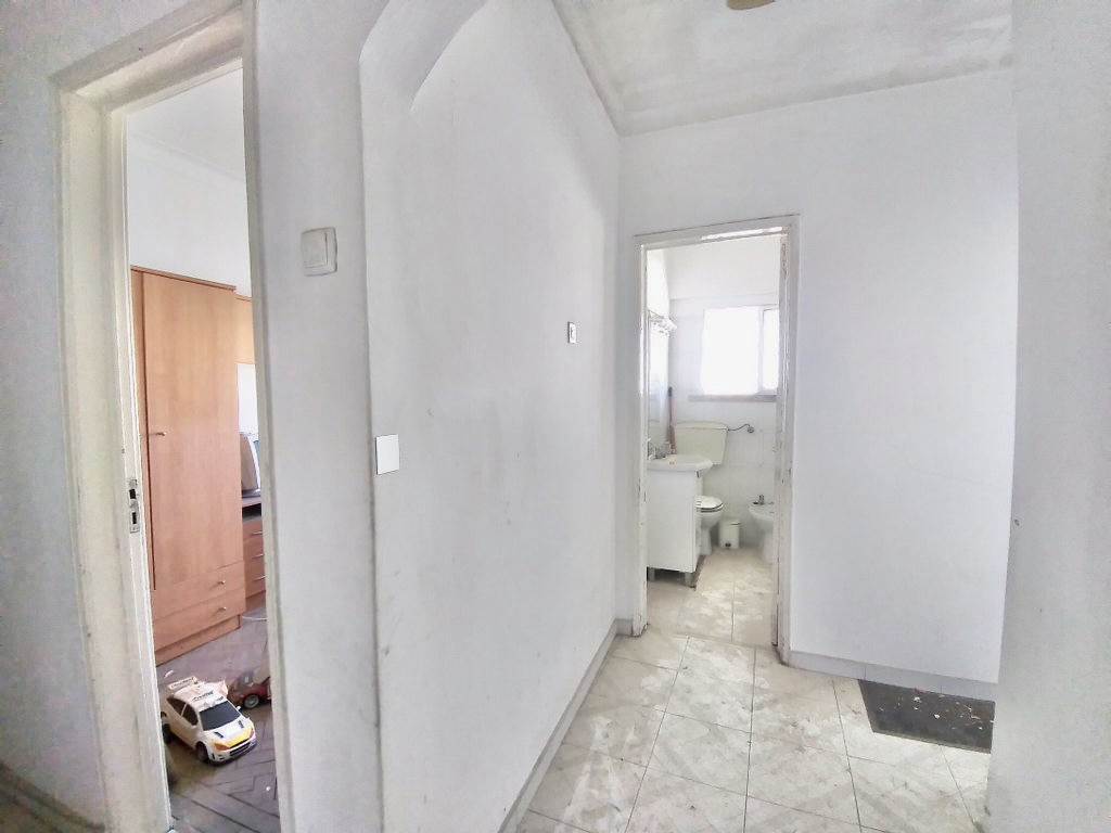 No apartamento, temos acesso para cozinha com varanda e casa de banho; 2 quartos, sala e despensa ao fundo do hall de entrada.