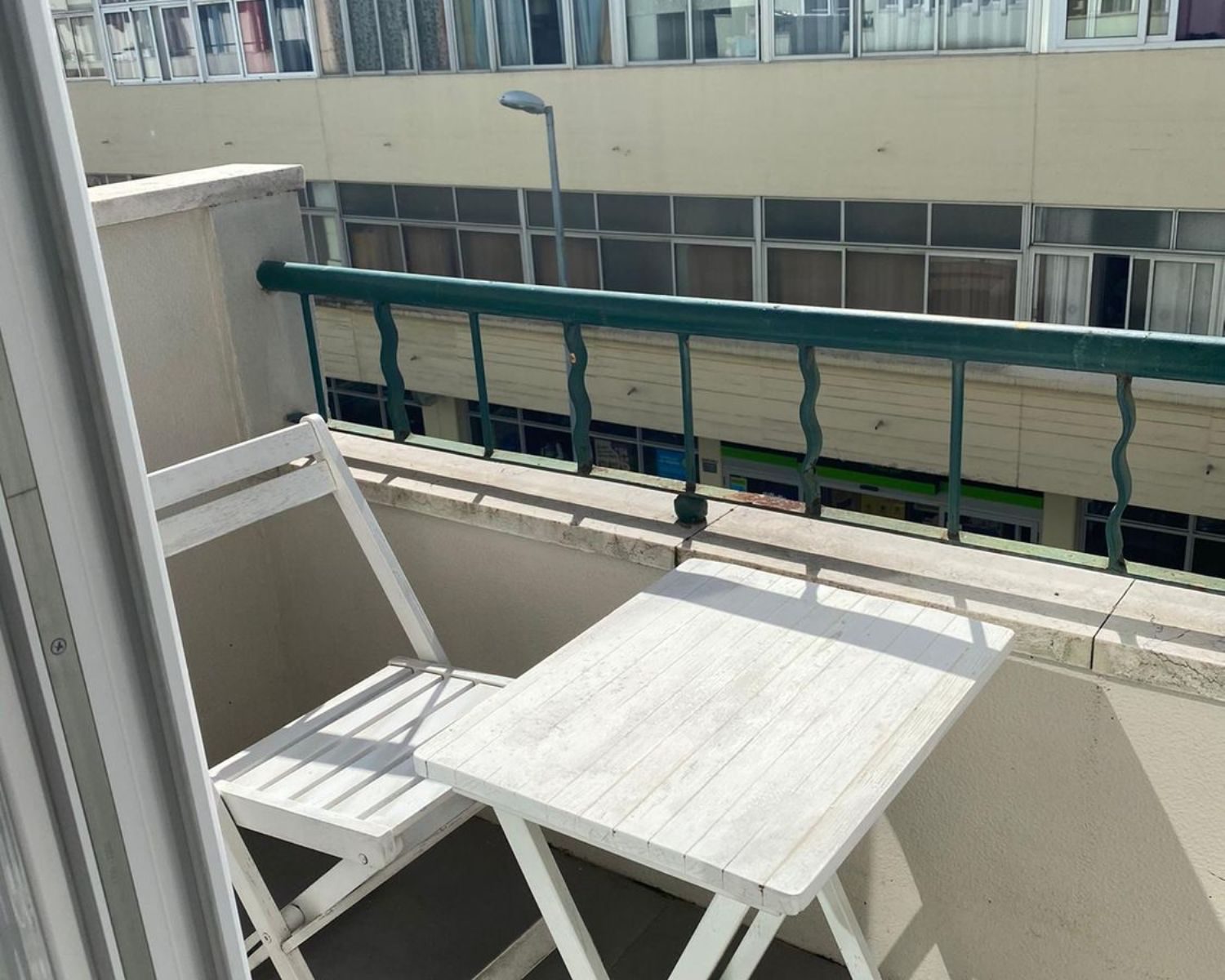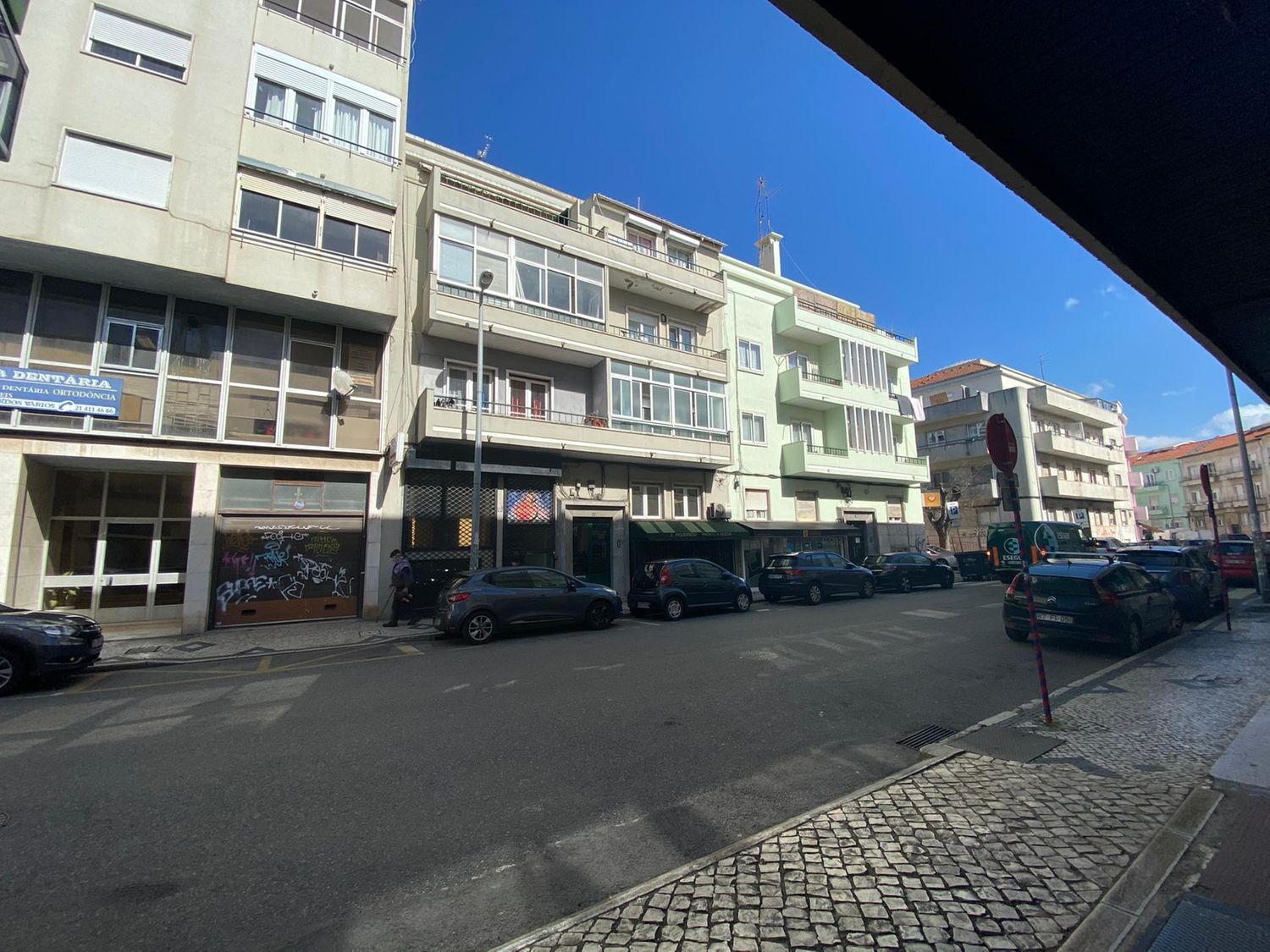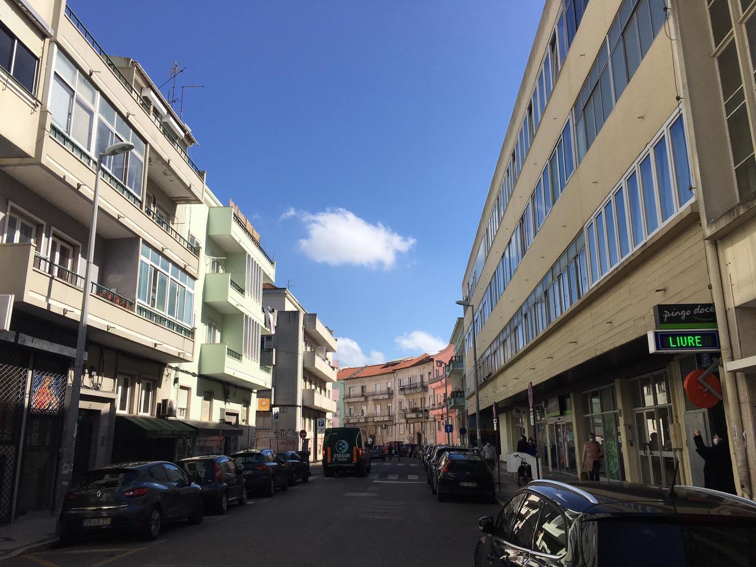 Fica em um prédio com poucos fogos, em um segundo andar sem elevador em frente ao Pingo Doce.