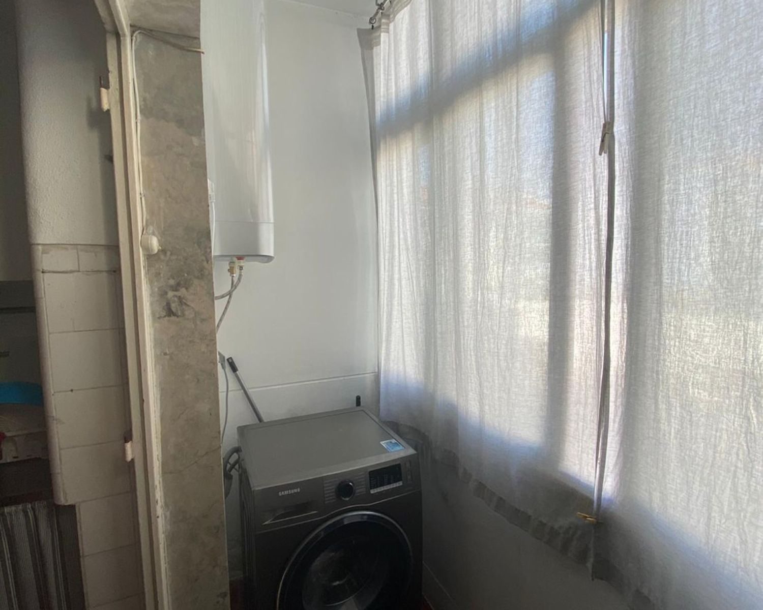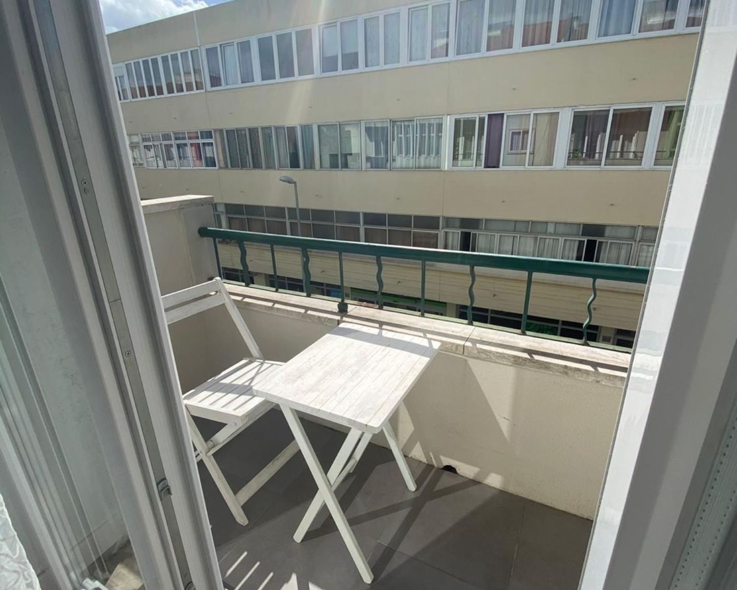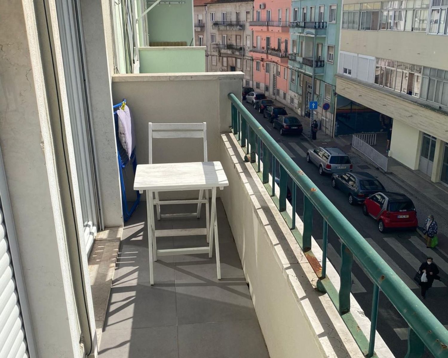 Fica em um prédio com poucos fogos, em um segundo andar sem elevador em frente ao Pingo Doce.