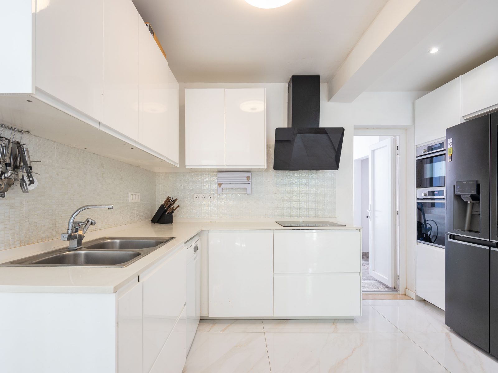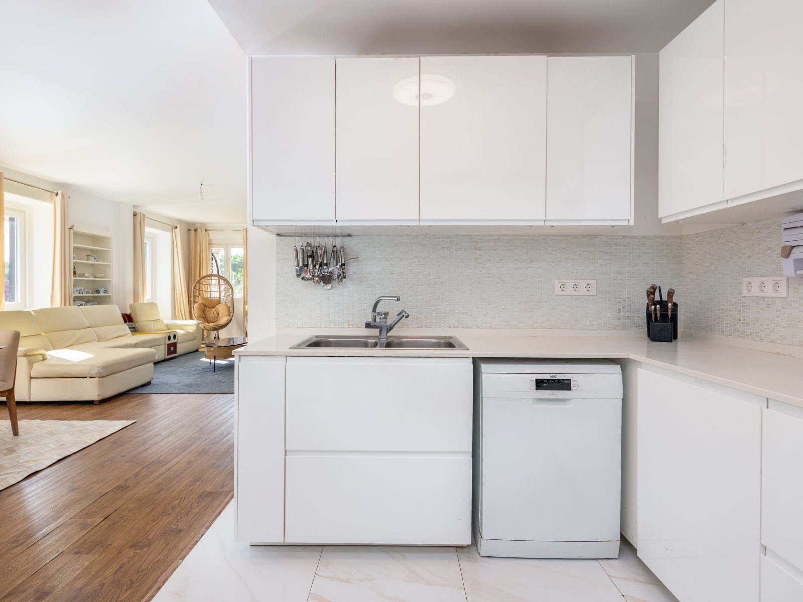 Cozinha aberta com saída para o exterior num total de 17m2 que pode ser ampliada e um pátio a seguir de 28m2.