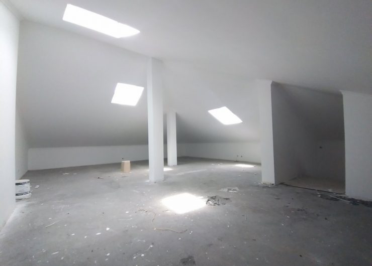 No 1º andar por hall de acesso a segunda cozinha, casa de banho, quarto e amplo salão. Este piso permite o acesso a sotão com muito espaço e diversas Velux, com bastante luz natural no local;
