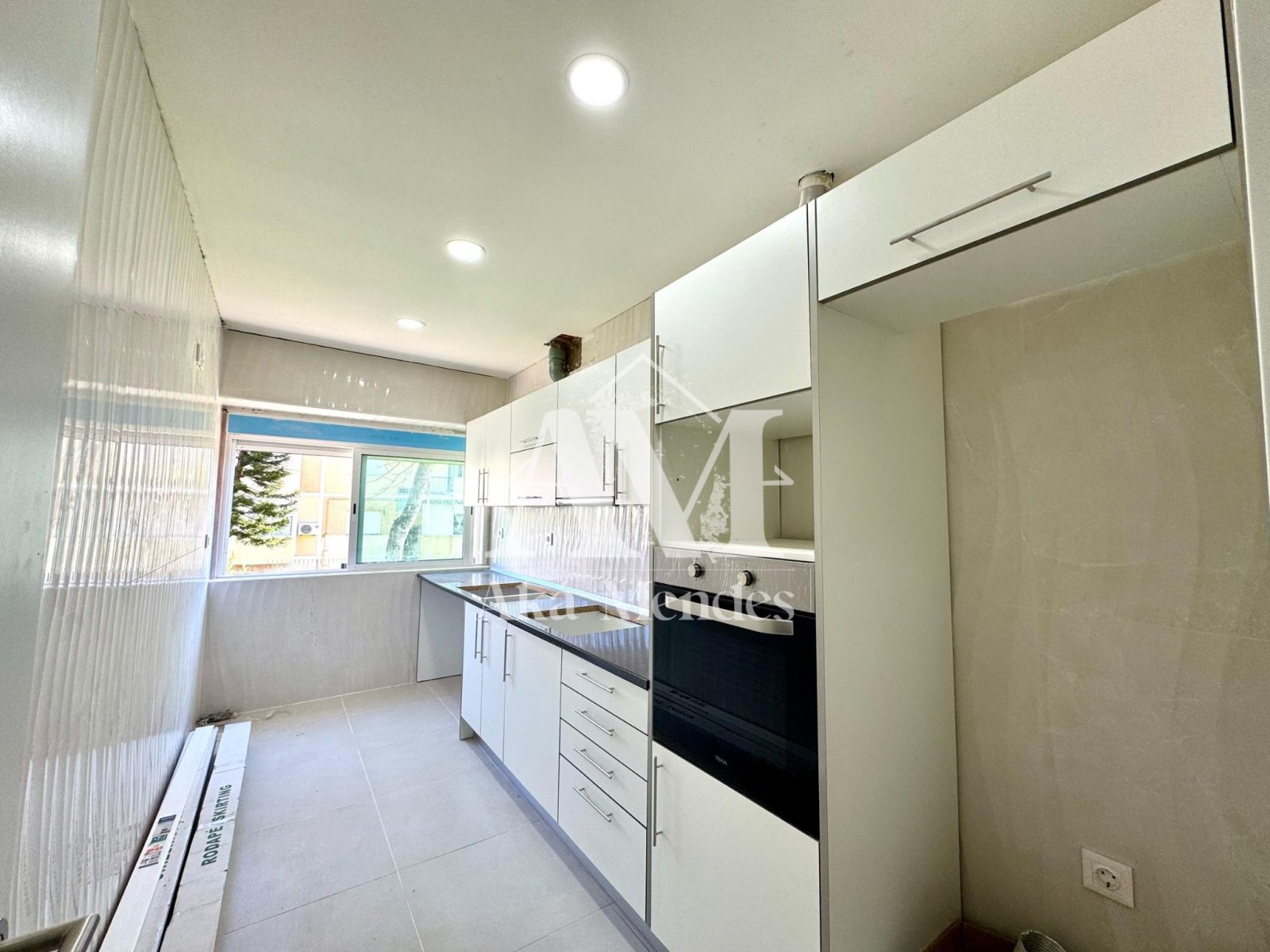 O imóvel está totalmente remodelado e inclui uma cozinha nova, feita à medida e equipada com placa, forno e exaustor. A caixilharia é toda nova, com vidros duplos e estores elétricos, garantindo conforto e eficiência energética. Os tetos falsos em pladur com iluminação LED embutida conferem um toque moderno e sofisticado ao espaço. O apartamento possui soalho flutuante nos quartos e mosaico nas restantes divisões. A canalização e a instalação elétrica foram totalmente revistas e estão em perfeitas condições.