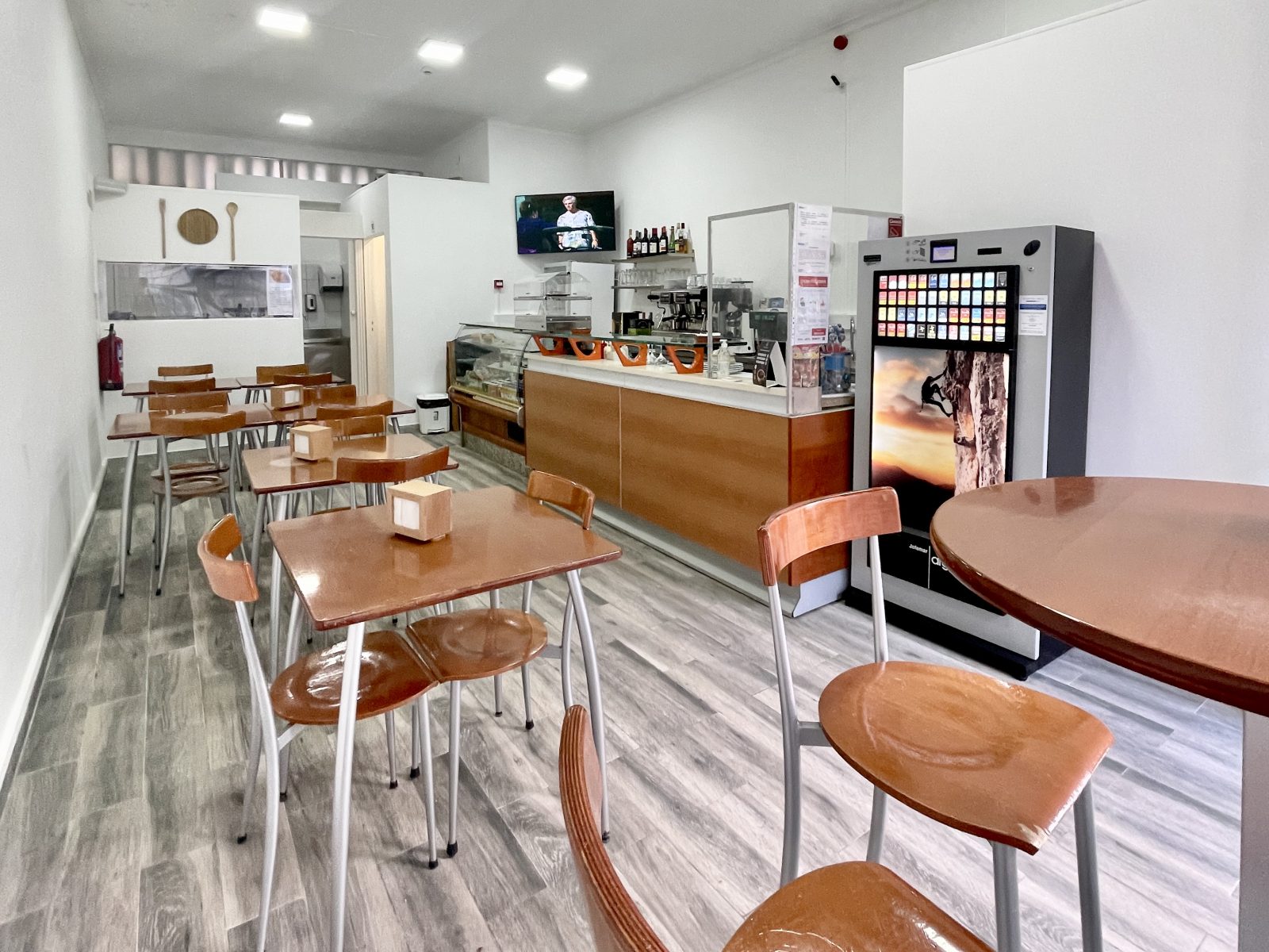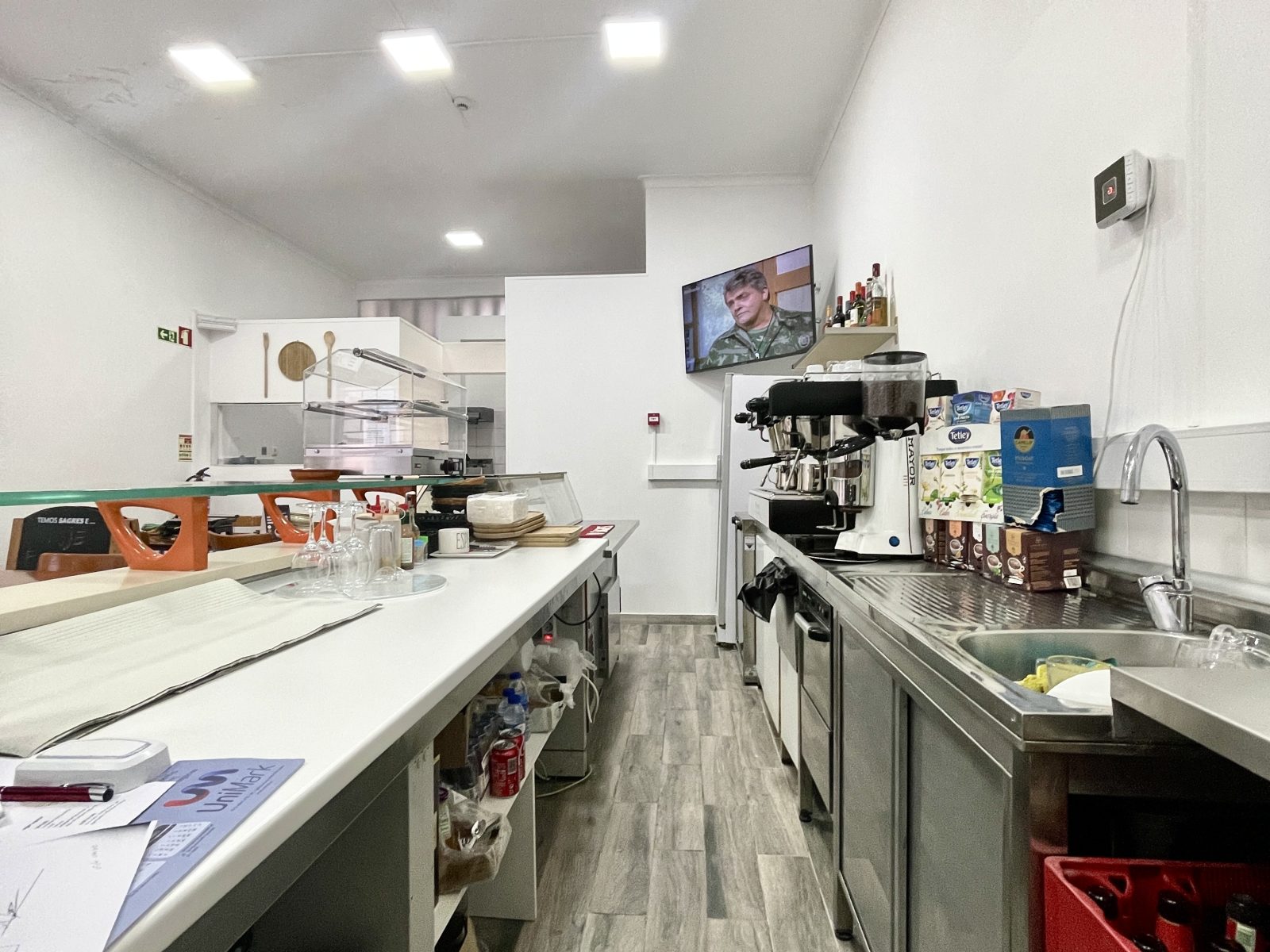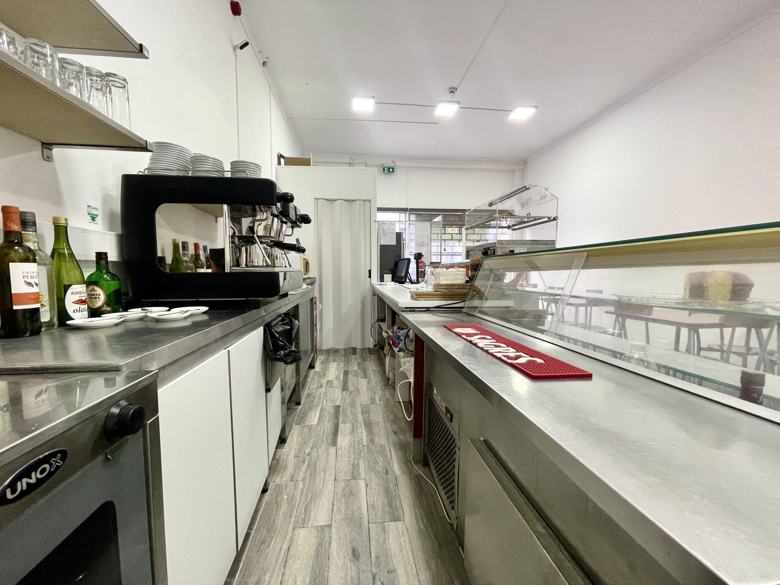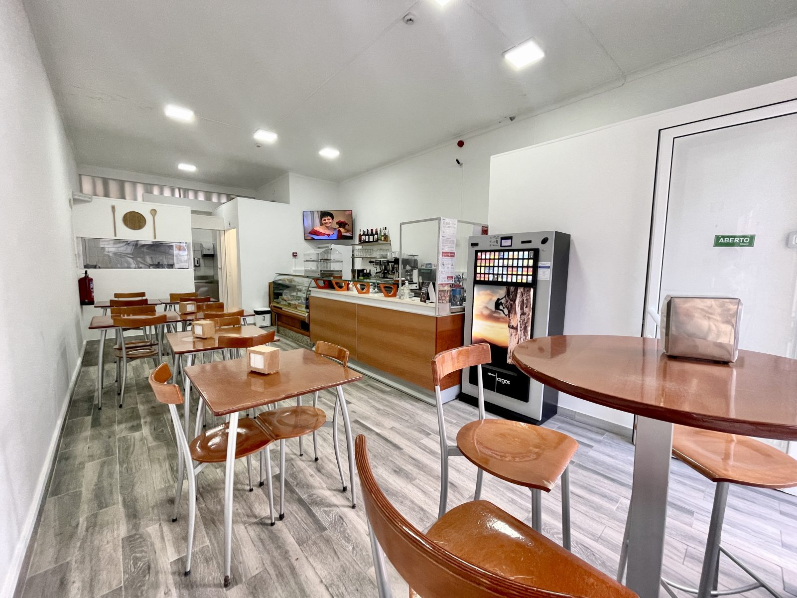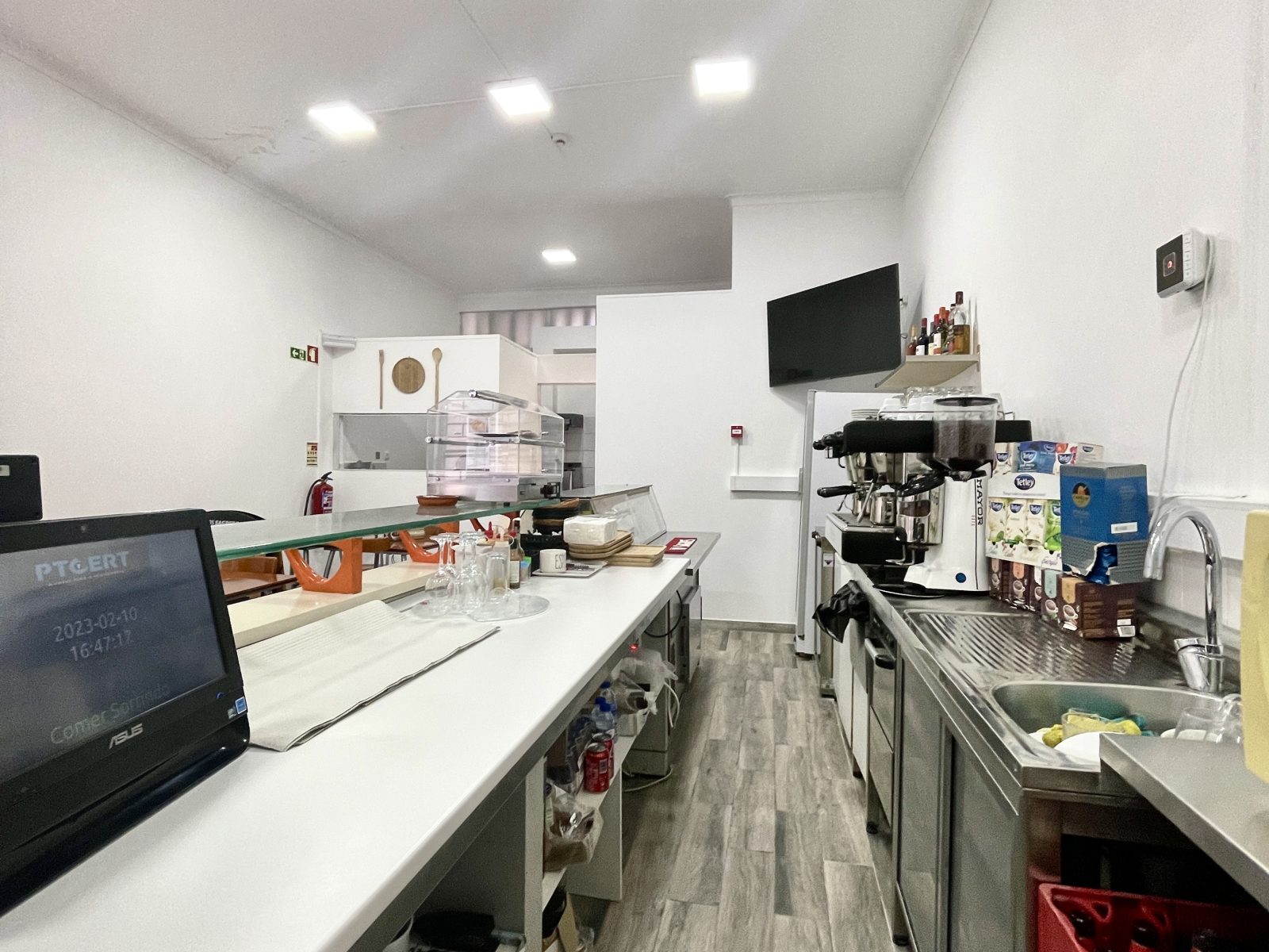 O espaço foi totalmente remodelado recentemente e fica todo equipado, com 2 máquinas de levedar massas, forno industrial e forno convencional, frigobar, frigorífico, vitrine de frigorífico, máquina de lavar loiça, exaustor, esquentador, computador, bancadas com lâminas de alumínio, 6 mesas, 14 cadeiras, 1 mesa bistrô com 3 banquetas e também uma máquina de fumos em consignação. Com câmera de segurança devidamente declaras em nome da empresa e regularizadas.